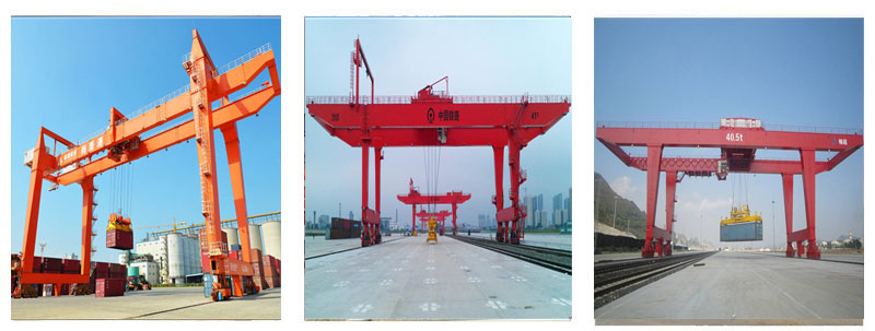 軌道式集裝箱門式起重機主要用于集裝箱鐵路轉動場和大型集裝箱儲運場的集裝箱裝卸搬運和堆放,在世界上主要集裝箱樞紐港投產使用。采用無懸臂、單懸臂或雙懸臂,是根據場地、集裝箱儲運工藝流程以及裝卸的車輛(集裝箱卡車或鐵路車輛)來確定。軌道式集裝箱門式起重機采用雙懸臂結構,用于集裝箱碼頭的裝卸作業。起重機可縱、橫和自回轉行走,對 20、40 國際標準集裝箱作業。起重機額定起生量為 55t(吊具下 35t 或 40t)