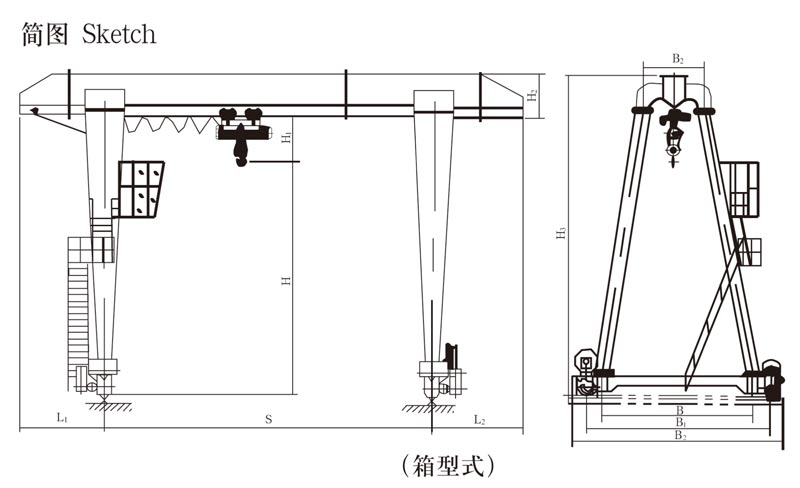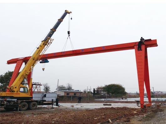 MH型電動葫蘆門式起重機,整機與CD1型或MD1型電動葫蘆配套使用,適合于露天作業的固定跨間,本機禁止吊運易燃易爆品,根據用戶要求還可以制成單端外伸懸臂式或無懸臂式結構。起重量為1-32T,跨度為7.5-35.5米,工作級別為A3,工作環境溫度為-25℃--40℃。